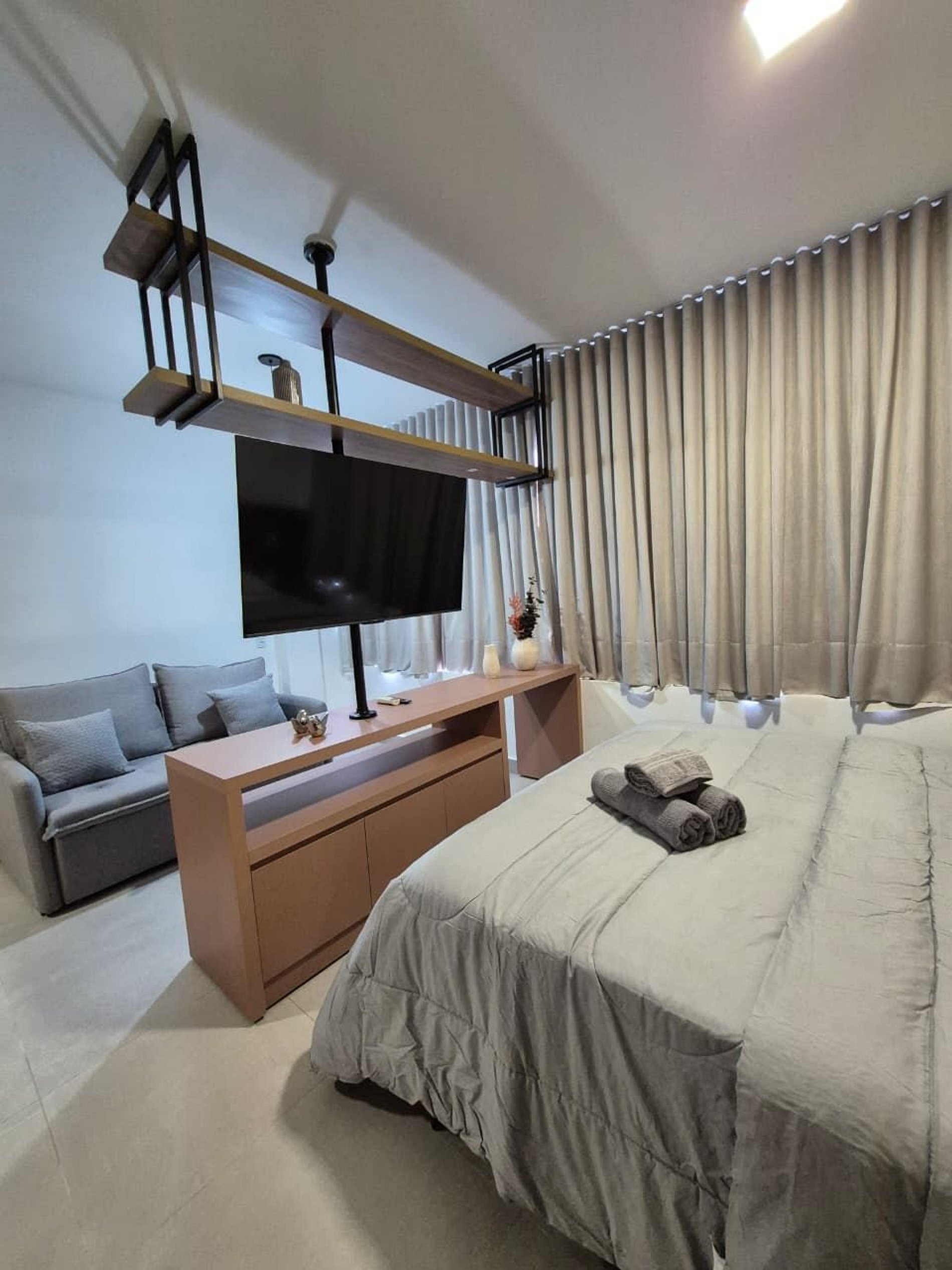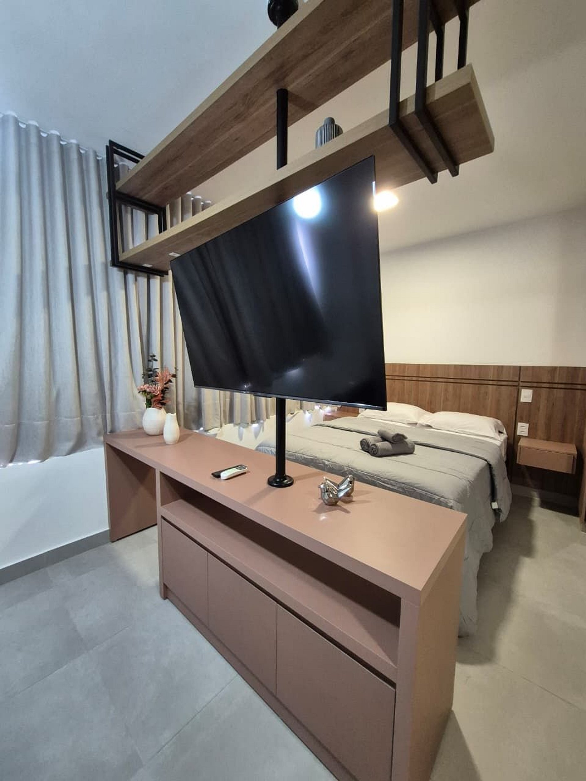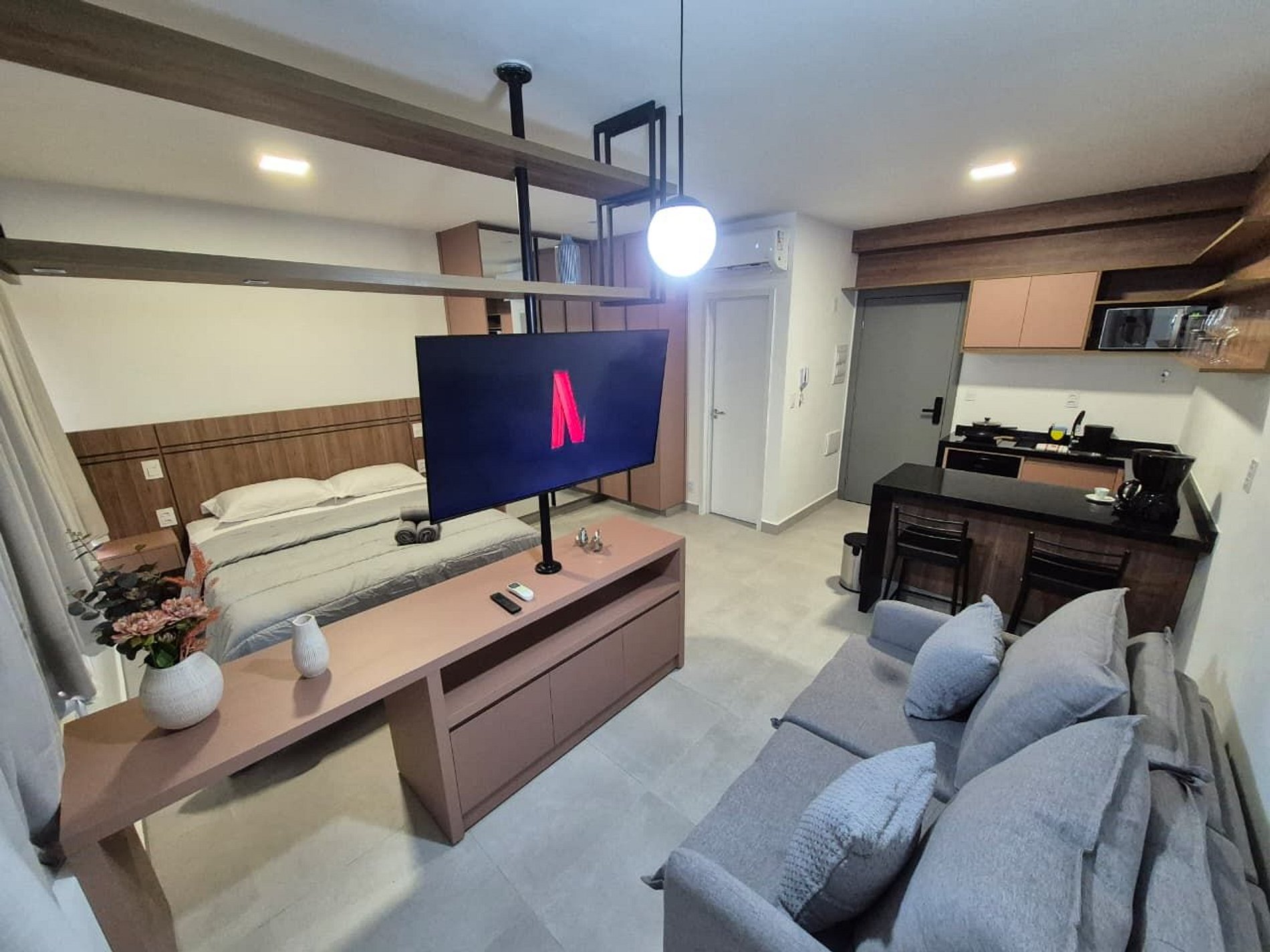 Stúdio completo, novíssimo e equipado. Estacionamento incluso no local, coberto e gratuito.